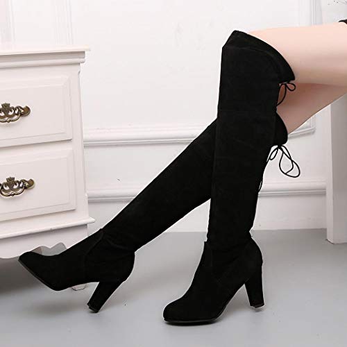 Teaio - Stivali al ginocchio da donna, con laccetti, stile casual, tinta unita