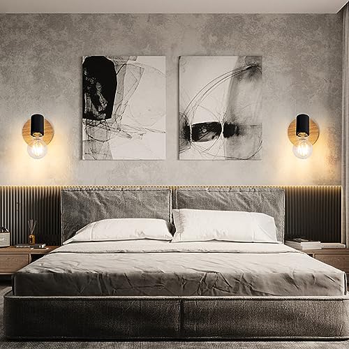 Tealight 2 Pezzi Lampada da Parete Vintage, Applique da Parete Interno in Legno, E27 Lampada a Muro Illuminazione Interni per Corridoio, Camera da Letto, Soggiorno
