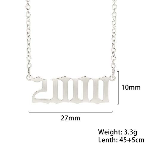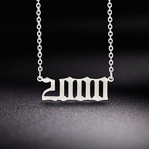 TEAMER Collana con Ciondolo Numero Anno Memoriale di Moda Collana in Argento a Maglie in Acciaio Inossidabile Regali di Laurea per Compleanno Gioielli Personalizzati per Donna Uomo(2000)