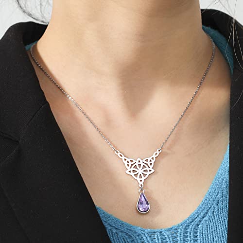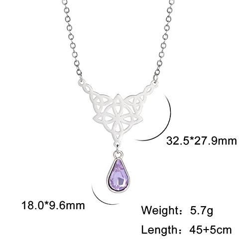 TEAMER Strega Celtics Nodo Triquetra Collana Acciaio Inossidabile Perla Cristallo Strass Ciondolo Goccia D'acqua per Le Donne Gioielli Amuleto Vintage (Viola)