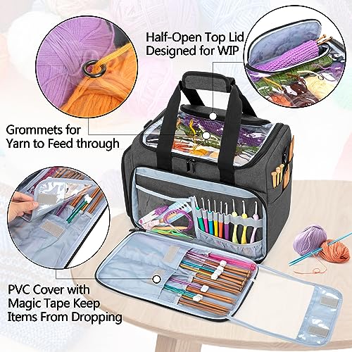 Teamoy Borsa porta filati, borsa da viaggio per maglieria con divisori interni pieghevoli per WIP, matasse di filato e accessori per maglieria, Grigio