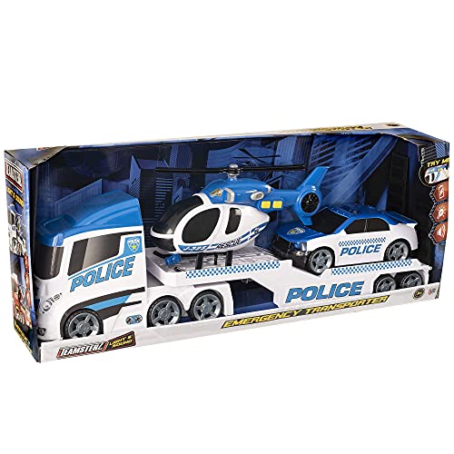 Teamsterz Mighty Machines - Trasportatore di elicottero della polizia di grandi dimensioni, luce e suono, per bambini e veicoli da gioco per bambini dai 3 anni in su