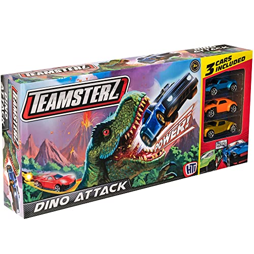Teamsterz Speed City Dino Attack Car Track Set | Include 3 auto da corsa pressofuse | Dinosaur Car Launcher Race Track Playset | Bambini Figures & Veicoli giocattolo Car Set | Età 3+