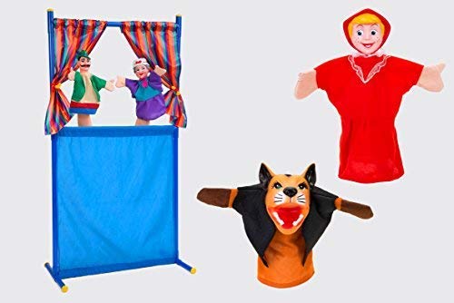 W'TOY- Teatro Burattini con 4 Marionette, 68x135 cm, 37840