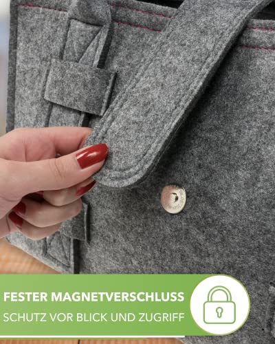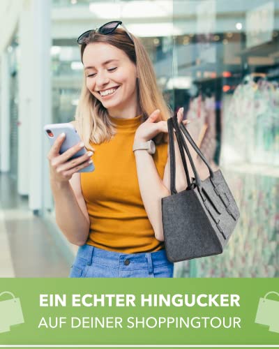 Tebewo - Borsa per la spesa in feltro, richiudibile, con manico, pieghevole e versatile, grigio scuro, 36x 22 x 22.5