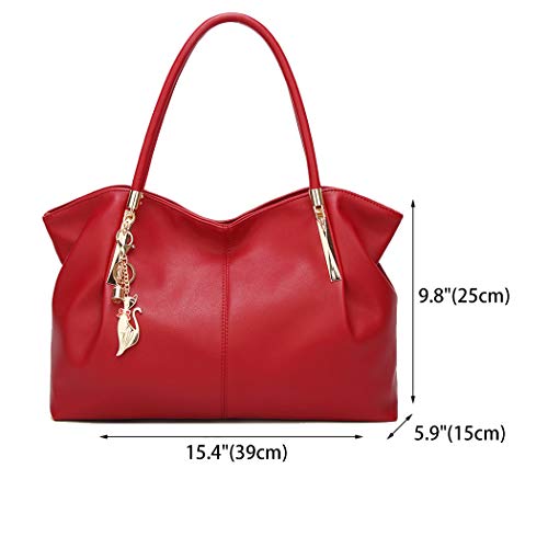 TEBIEAI Donna Borse a Spalla Pelle Borsa a Mano Ecopelle 2021 Borse a Tracolla Elegante Tote TEIT84093 Rosa Rossa