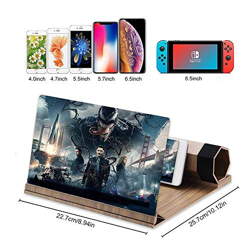 Tec-Digi - Amplificatore di ingrandimento dello schermo del telefono con zoom 2-6 volte, lente di ingrandimento 3d 12" per iPhone con supporto in legno per tutti gli smartphone