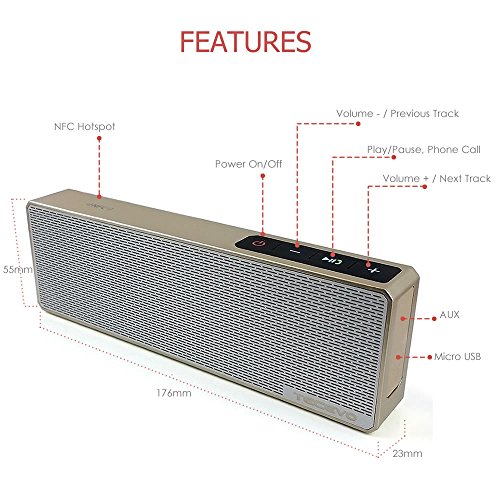 Tecevo, altoparlante T9 Slimline Bluetooth wireless, suono potente con microfono integrato, tecnologia NFC abilitata, resistente agli spruzzi, AUX line in