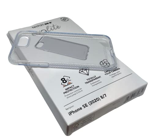 Tech21 Evo lite - Custodia trasparente trasparente per iPhone 7 / iPhone 8 / SE 2nd Gen (2020) / SE 3a generazione (2022) con protezione contro le cadute da 2,4 m, trasparente