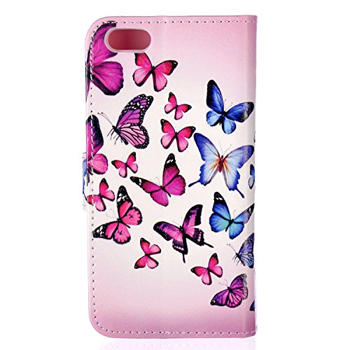 TechButik Custodie Cover per Apple iPhone 5C (4.0") Portafoglio in Pelle Flip Leather Wallet Case Bumper con Supporto Morbido Flessibile in Silicone Protezione Lifeproof Butterfly Motivo Imagen Originale Diseño Creativo