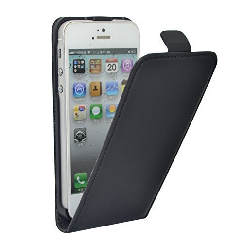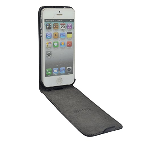 TecHERE ProFlip - Custodia Cover Flip Case in Vera Pelle per Apple iPhone SE iPhone 5s 5 - Cover Elegante e di Alta qualità Ultra Sottile (Nero)