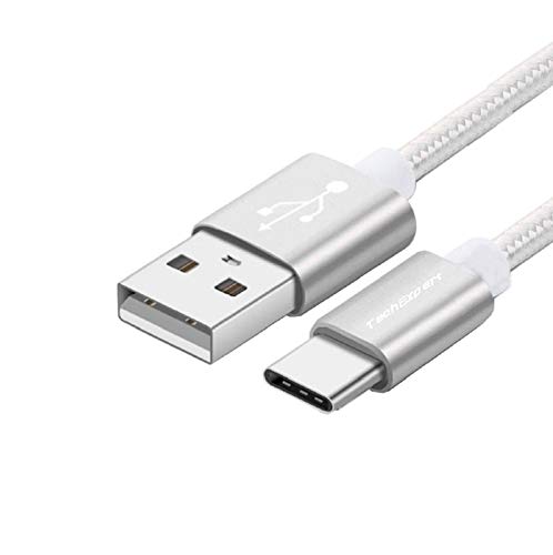 Caricatore 2 ampere + cavo 1 metro nylon argentato per tablet Asus con porta USB tipo C (non compatibile con i modelli precedenti con porta micro USB (fino all'inizio 2017) in caso di dubbio contattateci prima dell'acquisto)