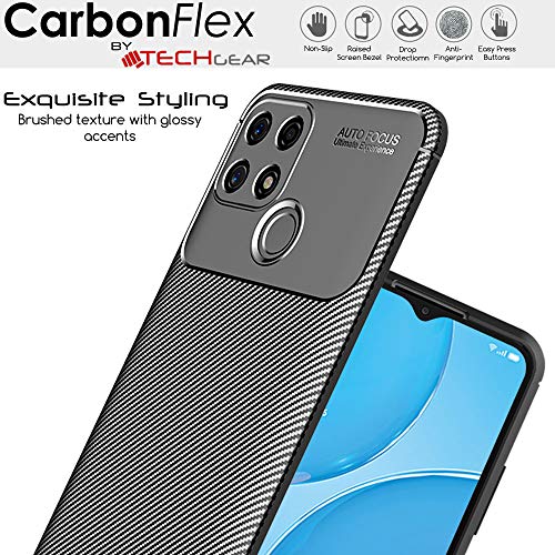 TECHGEAR Oppo A15 / A15s Cover [CarbonFlex Cover] - Sottile Morbido Antiurto Flessibile Cover, TPU Design in Fibra di Carbonio Originale Custodia per Oppo A15 - Nero