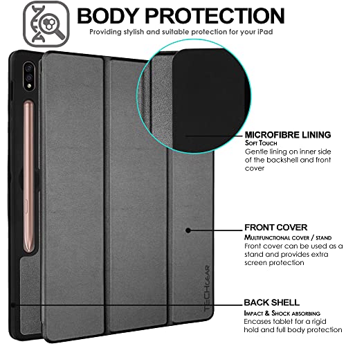TECHGEAR Cover Compatible con Samsung Galaxy Tab S8 11" 2023 (SM-X710 / SM-X716) Custodia Smart Cover tri-fold [Compatibile con penna] con protezione d'angolo [Sveglia Automatica] - Grigio