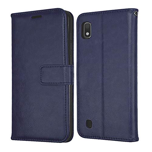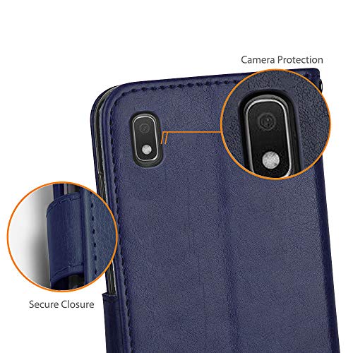 TECHGEAR Custodia Compatibile con Samsung Galaxy A10, Cover Protettiva in Pelle con Slot per Schede, Supporto e Cinturino da Polso - Pelle Sintetica per Samsung Galaxy A10 (Blu)