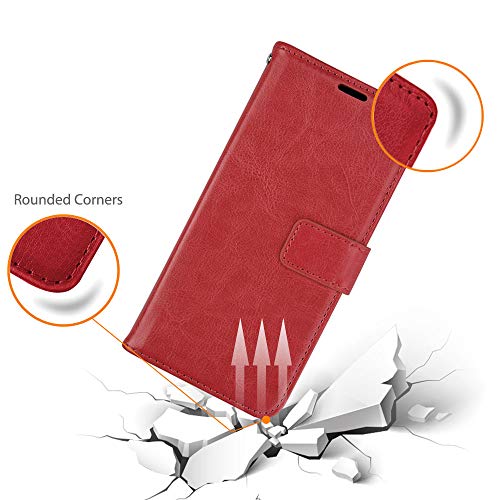 TECHGEAR Custodia Compatibile con Samsung Galaxy A20e, Cover Protettiva in Pelle con Slot per Schede, Supporto e Cinturino da Polso - Pelle Sintetica per Samsung Galaxy A20e (Rosso)