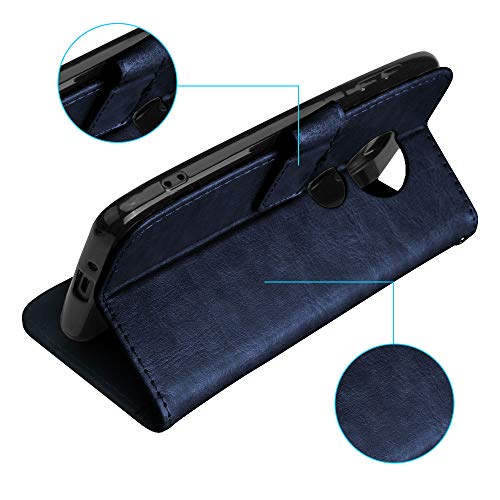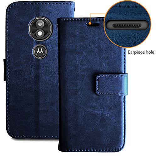 TECHGEAR Moto E5 Play Custodia - Cover Protettiva in Pelle con Slot per Schede, Supporto e Cinturino da Polso - Blu Pelle Sintetica Designato per Motorola Moto E5 Play