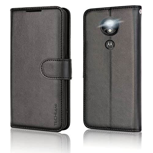 TECHGEAR Moto E5 Play Custodia - Cover Protettiva in Pelle con Slot per Schede, Supporto e Cinturino da Polso - Nero Pelle Sintetica Designato per Motorola Moto E5 Play