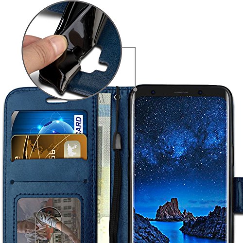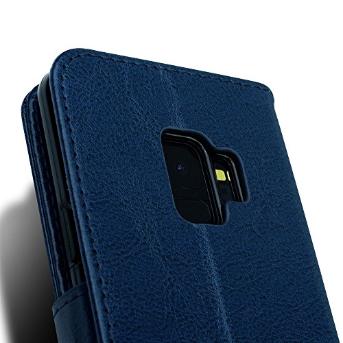TECHGEAR Custodia Galaxy S9 - Custodia Protettiva in Pelle Cover con Slot per Schede, Supporto e Cinturino da Polso - Pelle Sintetica Compatibile con Samsung Galaxy S9 (Blu)