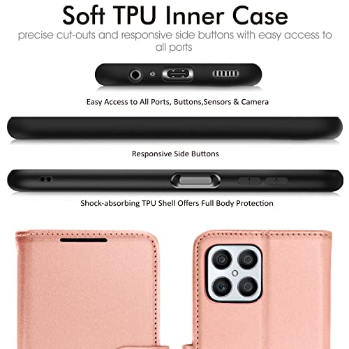 TECHGEAR Custodia in Pelle Compatibile con Honor X8, Cover Libro Protettiva con Slot per Schede, Supporto e Cinturino da Polso - Pelle Sintetica per Honor X8 Cover Portafoglio (Oro Rosa)