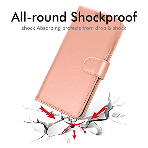 TECHGEAR Custodia in Pelle Oppo Find X3 Lite 5G, Cover Libro Litetettiva con Slot per Schede, Supporto e Cinturino da Polso - Pelle Sintetica per Oppo Find X3 Lite 5G Cover Portafoglio (Oro Rosa)