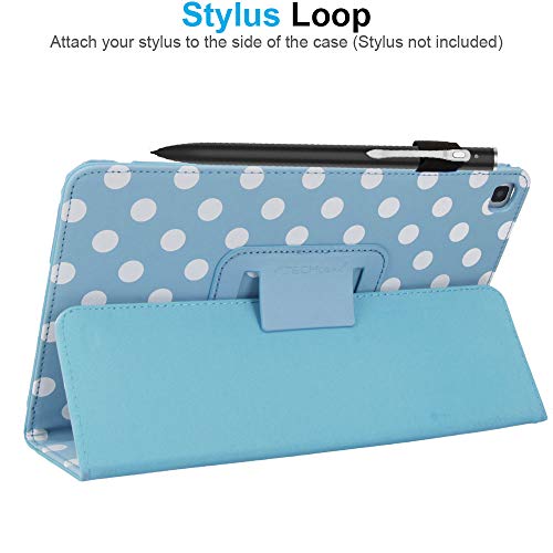 TECHGEAR Custodia in Pelle Designato per Samsung Galaxy Tab A 8.0" 2019 (SM-T290/SM-T295), Custodia Rigida Sottile di Alta qualità in PU Pelle con Supporto e Cinturino a Mano [Polka DOT Blu]