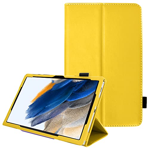 TECHGEAR Custodia in Pelle Designato per Samsung Galaxy Tab A8 10.5" 2022 (SM-X200 / SM-X205), Custodia Rigida Sottile di Alta Qualità in PU Pelle con Supporto e Cinturino a Mano [Giallo]