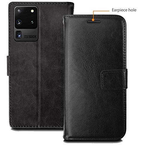 TECHGEAR Custodia in Pelle Galaxy S20 Ultra, Cover Libro Protettiva con Slot per Schede, Supporto e Cinturino da Polso - Pelle Sintetica per Samsung Galaxy S20 Ultra 5G Cover Portafoglio (Nero)