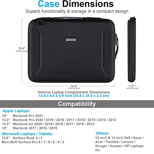 TECHGEAR Custodia Resistente per 12"- 13.3" pollici Computer Portatili, Borsa Portatile con Tracolla per Trasporto per MacBook Air 13", Macbook Pro 13" 2021 / Pro 14" 2021, Surface Pro 8/7/6/X/5/4/3