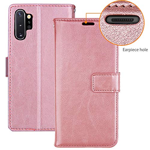 TECHGEAR Galaxy Note 10 Plus Cover Protettiva in Pelle con Slot per Schede, Supporto e Cinturino da Polso - Oro Rosa Pelle Sintetica designato per Samsung Galaxy Note 10+, Note 10+ 5G