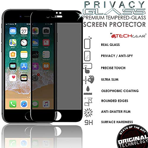 TECHGEAR [2 Pezzi Pellicola Anti Spy per iPhone 8 Plus, iPhone 7 Plus - Privacy 3D Vetro Autentica Pellicola in Vetro Temperato Copertura Completa Compatibile con iPhone 8 Plus, iPhone 7 Plus