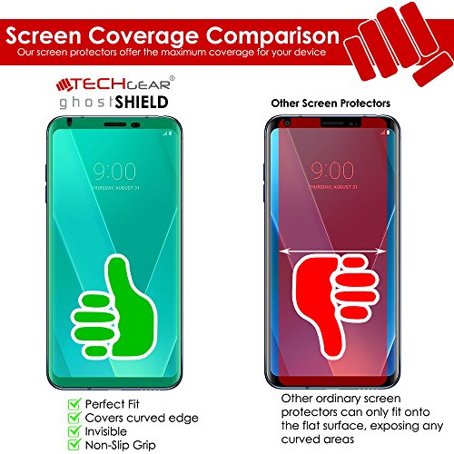 TECHGEAR [3 Pezzi Pellicola Protettiva Compatibile con LG V30 [Edizione ghostSHIELD] Proteggi Schermo Rainforzata Flessibile TPU Pellicola Copertura per Schermo Intero Incluso Schermo Curvo