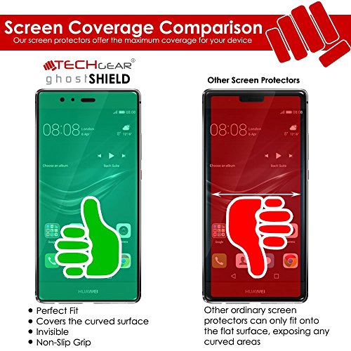 TECHGEAR [3 Pezzi Pellicola Protettiva Compatibile con Huawei P9 Plus [Edizione ghostSHIELD] Proteggi Schermo Rainforzata Flessibile TPU Pellicola per Schermo Intero Incluso Schermo Curvo
