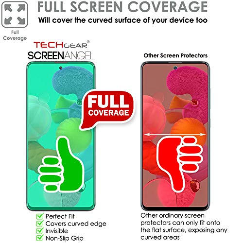 TECHGEAR [3 Pezzi Pellicola Protettiva Compatibile con Samsung Galaxy A51 [Edizione Screen Angel] Alta Definizione Pellicola [Senza Bolle] TPU Copertura per Schermo Intera Incluso Schermo Curvo