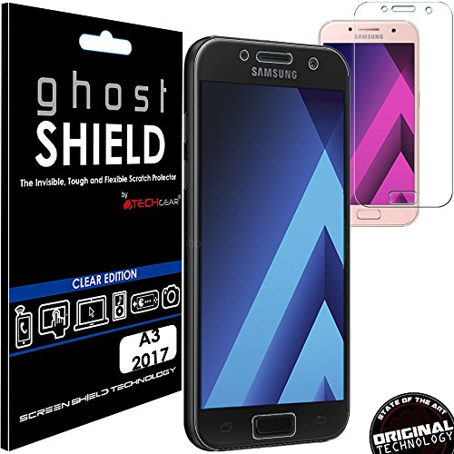 TECHGEAR [3 Pezzi Pellicola Protettiva Compatibile con Samsung Galaxy A3 2017 [Edizione ghostSHIELD] Proteggi Schermo Rainforzata Flessibile TPU Pellicola per Schermo Intero Incluso Schermo Curvo