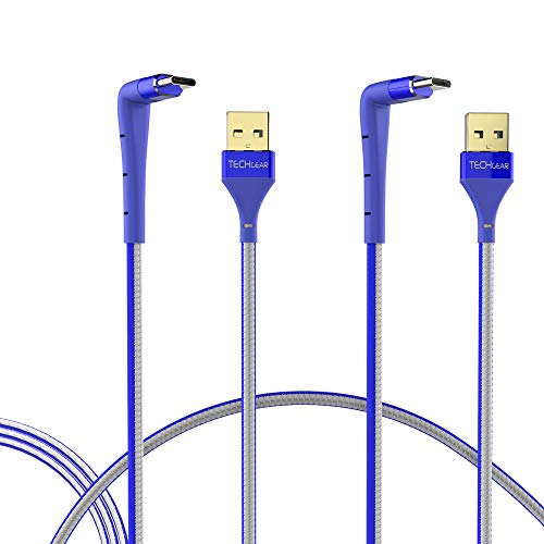 TECHGEAR USB C Cavo, 2 Pezzi Cavo di ricarica veloce e Sincronizzazione angolo 90 gradi con supporto Compatibile con Huawei P30, Moto G7, Samsung S10 S9 A20e A50 A70, Pixel 3, OnePlus 7 ecc - Blu