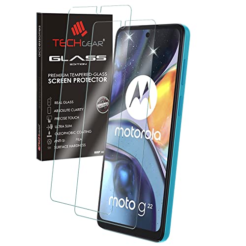 TECHGEAR [2 Pezzi] Vetro Temperato per Motorola Moto G22, 3D Copertura Completa Pellicola Vetro [Funzion con Impronte Digitali] [Senza Bolle] [Durezza 9H] [Ultra Chiaro] [Anti-graffio]
