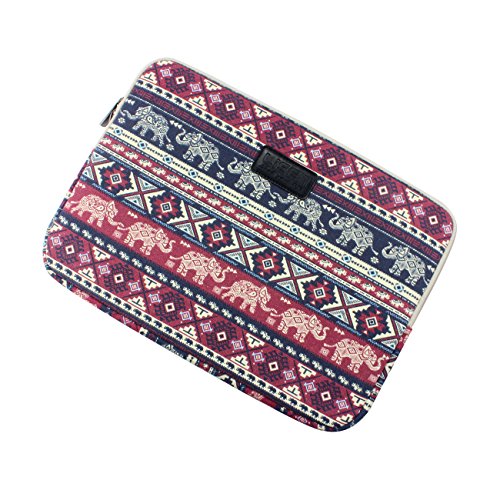 TECHKOO Custodia Morbida per Laptop, Notebook, MacBook Air da 10-15.6 Pollici, allo Stile Bohemien Tessuto di Tela, pratica e amata dai giovani (15.6 ''Disegno Elefante Rosso)