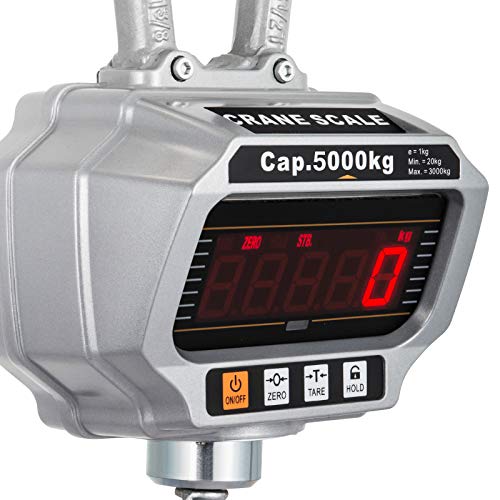 Precisione Senza Compromessi: La bilancia digitale sospesa con una capacità massima di 5000 kg / 11000 LBS, è dotata di un sensore accurato, ha un'elevata precisione di misurazione e ha anche le funzioni di Zero, tara;