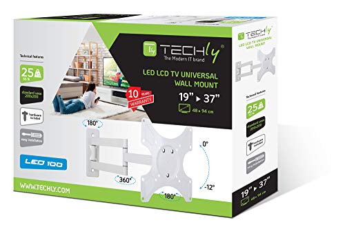 TECHLY 023820 Supporto a Muro per TV LED LCD 19-37'' Inclinabile 3 Snodi Bianco Bianco