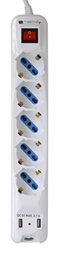 TECHLY 023899 Multipresa 5 Posti Italiana Bipasso con 2 Prese USB Bianco
