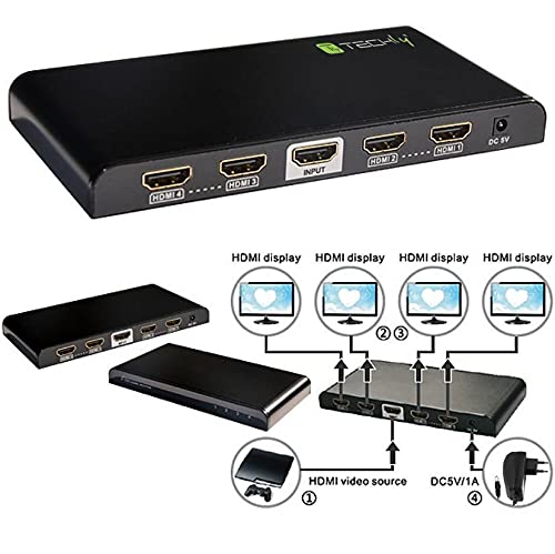 Techly 023981 Splitter HDMI2.0 4K UHD 3D 4 Vie Nero