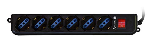 TECHLY 300279 Multipresa 6 Posti Italiana Bipasso con Interruttore Nero Nero