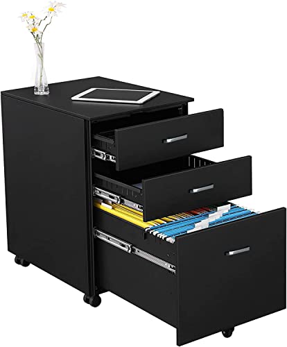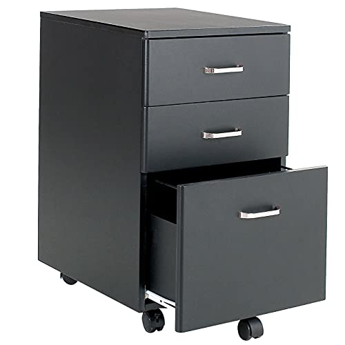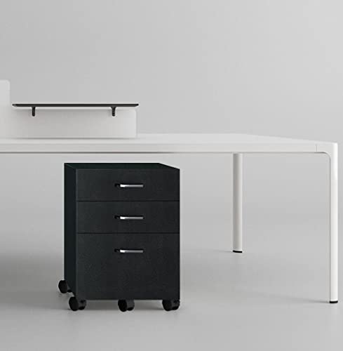 TECHLY 307346 Cassettiera a Tre Cassetti per Scrivania, Nero Grafite Nero