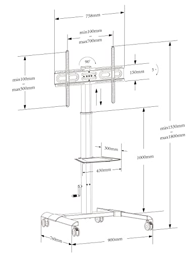 ✅ Standard VESA supportati dal carrello: 200 x 200, 300 x 300, 400 x 200, 400 x 300, 400 x 400 & 600 x 400;
