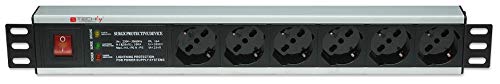 TECHLY Professional 023202 Multipresa 6 Posti Rack 19'' con Protezione e Interruttore Nero/Argento