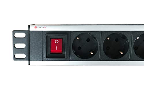 Techly Professional 305649 Multipresa 8 Posti da Rack 19" con Interruttore Spina Schuko Angolata 1.5U Nero/Argento