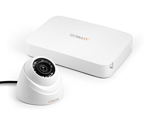 Technaxx Mini Security Kit PRO HD 720p, Set di sorveglianza con ricevitore e telecamera interna TX-49 - Monitor in tempo reale, Rilevamento movimento, Attivazione allarme, Visione notturna