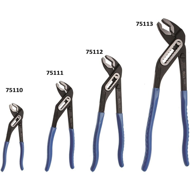 PINZA A PAPPAGALLO REGOLABILI BGS Pinze a pappagallo con apertura regolabile, in CHROM-VANADIUM e manici rivestiti antiscivolo. - qualit� professionale - forgiate e temprate - finitura smaltata nera - ganasce e giunto lucidati - impugnature rivestite in PVC Caratteristiche delle pinze: BGS 75110 apertura max 27 mm lunghezza 18 mm BGS 75111 apertura max 38 mm lunghezza 25 mm BGS 75112 apertura max 44 mm lunghezza 35 mm BGS 75113 apertura max 80 mm lunghezza 45 mm