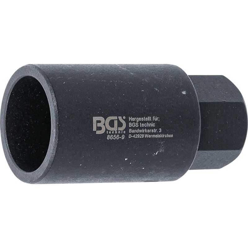 Manicotto di smontaggio BGS 8656 Serve per smontare in modo professionale i bulloni antifurto per cerchi in lega Apre quasi tutti i bulloni antifurto senza danneggiare il cerchio Forma conica Diametro interno: 24,5 x 22,6 mm